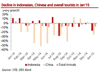 Analysts at DBS believe this would translate to decline in Indonesian and overall tourist arrivals at least in the 1H15.