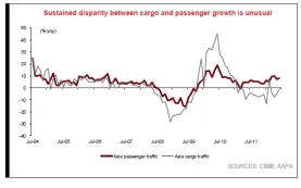This graph shows sustained disparity in cargo and passenger growth is unusual.