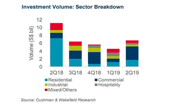 “Prices are riding on the expectation that yield-hungry investors will be diverted from the bond market to the commercial property market due to the widening yield spread. The momentum seen in the commercial sector during H1 2019 is expected to continue with the sale of more big ticket items in the pipeline, such as DUO Tower, 71 Robinson Road, and Anson House,” Christine Li, Cushman & Wakefield’s head of research for Singapore and Southeast Asia explained.