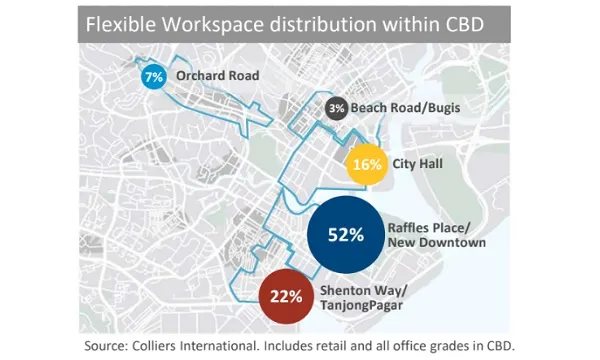 Flexible workspaces may continue to expand to retail and hotel spaces on top of decentralising to fringe areas, as vacancy in the central business district tightens, according to Colliers Research.
