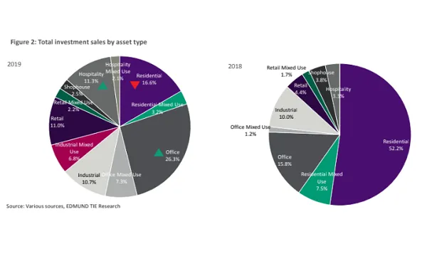 Total investments in the office property scene surged 53.5% YoY in 2019, based on total private sector deals and GLS sites, according to a report by EDMUND TIE. Notably, it now accounts for most of the total property investment value at 26.3% from 15.8% in 2018.