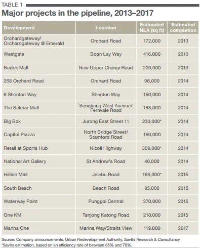 Savills noted 15 major retail projects in the pipeline which are estimated to be completed by 2013-2017 (See Table 1).