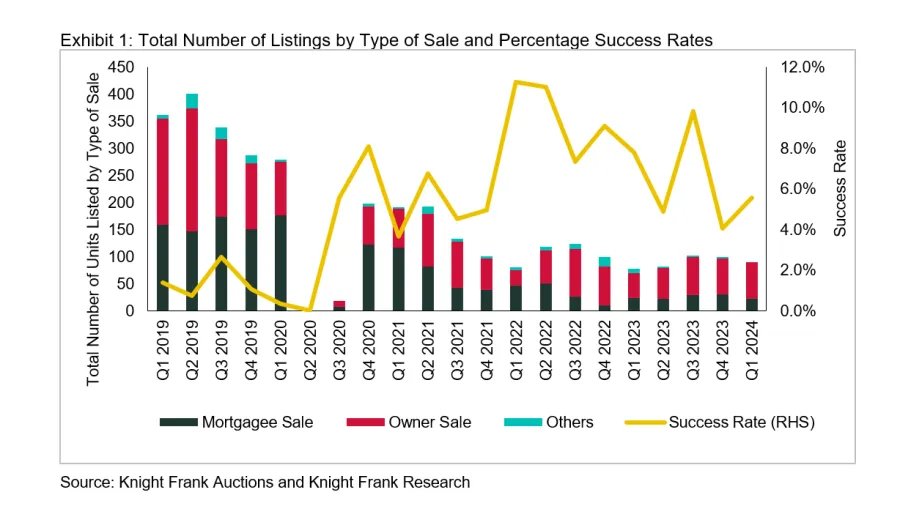 The 1Q24 figure includes repeat listings but excludes properties sold outside of auctions.