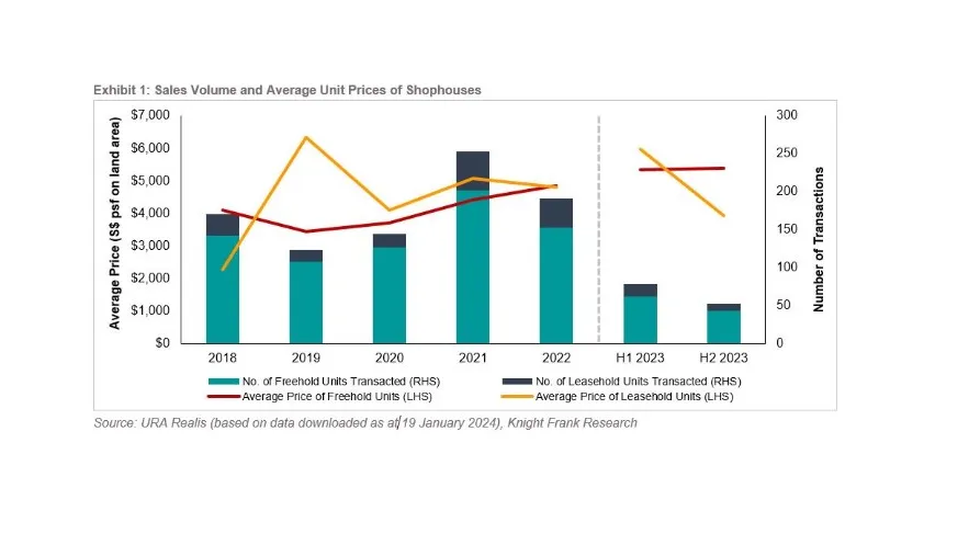 According to Knight Frank, the average price of freehold shophouses reflects the total transaction sales value recorded in 2023 of $948.0m.