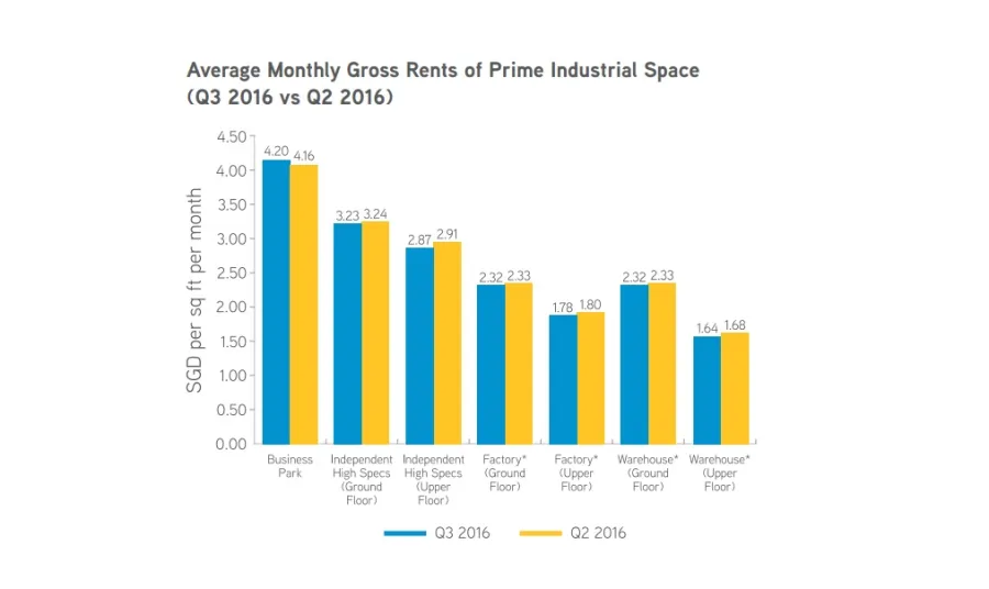 According to Colliers International, only the business park segment resisted this downward trend, managing to register a 1.0% QOQ increase to $4.20 per sq ft in Q3 2016.