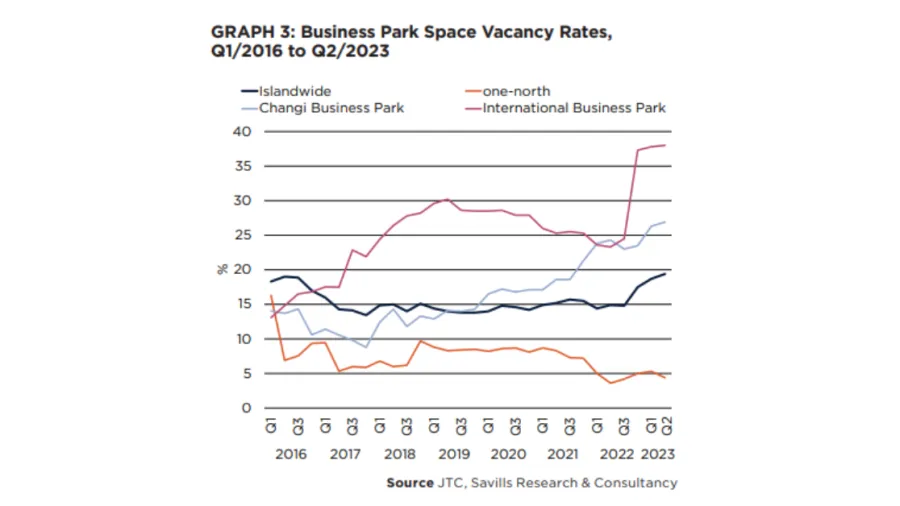 The islandwide vacancy rate increased by 0.7 percentage points (ppt) quarter-on-quarter in the second quarter, worsening to the highest rate since 2014 at 19.4%, according to a report by Savills.