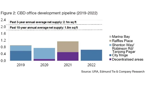Rental rates within the CBD are projected to rise between 5% and 9% in 2019 as the office sector is expected to remain relatively positive, largely due to limited new office supply until 2022, according to research from Edmund Tie & Company.