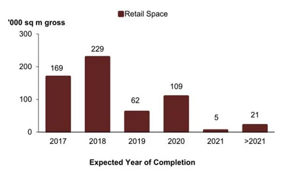 According to the latest statistics from URA, as at the end of 4Q16, there was a total supply of 595,000 sq m GFA of retail space from projects in the pipeline, compared with the 652,000 sq m GFA of retail space in the pipeline in the previous quarter.