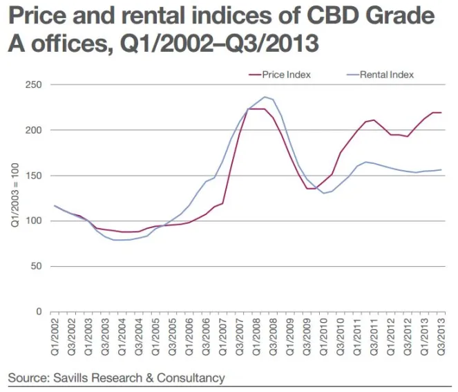Chart of the Day: Check out how much rents for CBD Grade A office buildings jumped in 3Q13