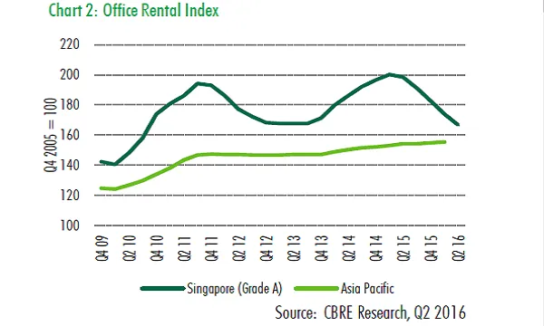 CBRE said islandwide net absorption for Q216 was -74,741psf.