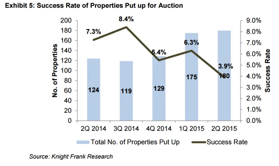 Knight Frank noted that only 7 properties were successfully auctioned off in Q2, a significant decline of 36.4% quarter-on-quarter, or 22.2% year-on-year.