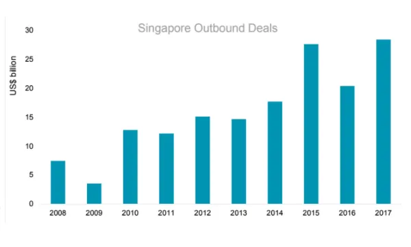 This chart from Cushman & Wakefield (C&W) shows Singaporean investors placed US$28.4b or $37.17b in overseas real estate, the highest recorded value in nine years.