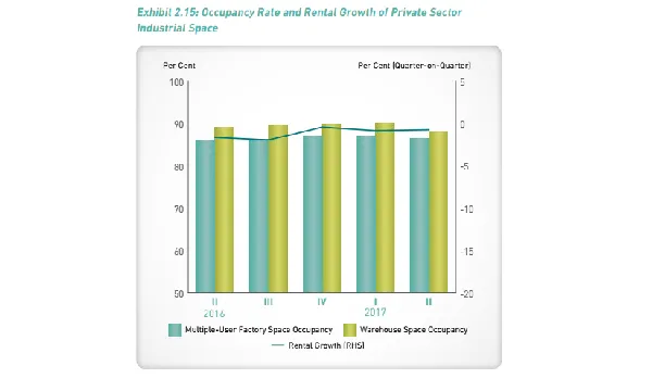 Occupancy rate in the private sector multiple-user factory space segment stood at 86%.