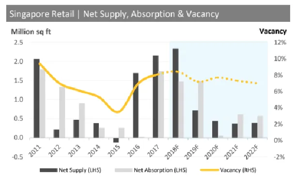 Notwithstanding the anticipated vacancy spike in 2018 due to a large injection of supply, the firm thinks that overall retail vacancy rate appears to be steadily trending down to below 7% which is an improvement from the peak vacancy levels in excess of 8% during 2016 to 2017.