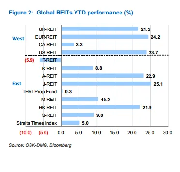 Singapore-listed industrial REITs, otherwise known as industrial S-REITs, are lagging their regional peers in total returns this year.