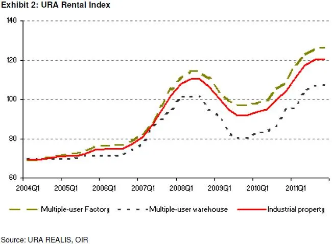 Industrial REITs may likely experience revaluation gains in their portfolios based on the trend of URA rental and price indexes.