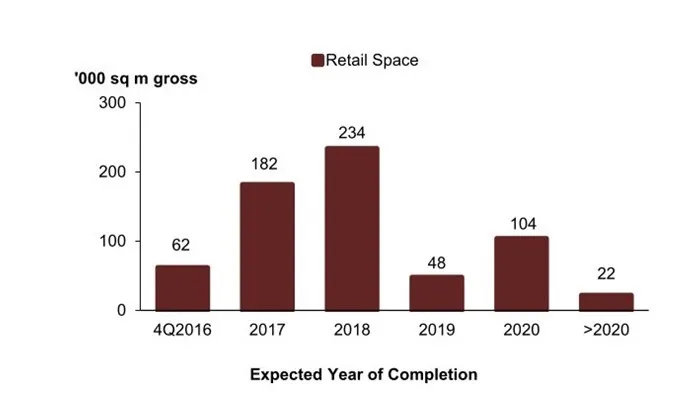 As projected, over 182, 000 sqm of space will be available in 2017. This will balloon over 234,000 sqm in 2018.