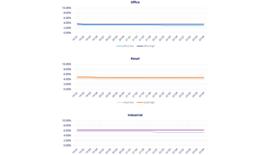 In the past three years, Singapore’s prime office, retail and industrial cap rates have remained relatively stable despite 11 rate hikes from the US Federal Reserve from 17 March 2022 to 27 July 2023, with rates ranging from 5.25% to 5.50%.