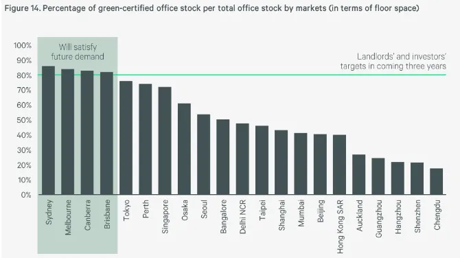 Despite having a high adoption rate, available green office spaces in Singapore still lag behind market demand.