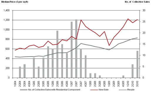 “Median prices for new sales average at 48% above that of resale transactions during the first three quarters of 2010. These factors seem to have encouraged owners of older properties to band together and attempt a collective sale of the estate,” Hoh added.