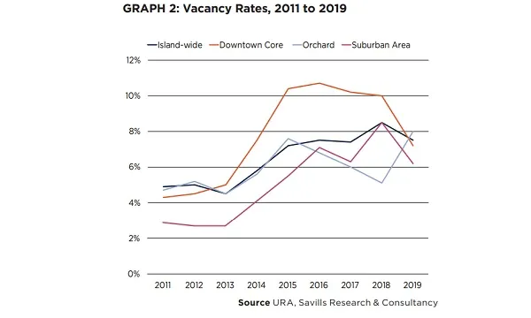 The overall vacancy level of retail spaces held firm at 7.5% in Q4 2019, despite higher vacancy pressures forming in parts of Central Region, according to a Savills report.