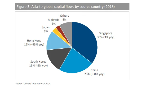 According to a report, capital flows from Singapore to global property markets reached US$18.0b, up by 3% YoY to account for 36% of the total (US$50.5b).