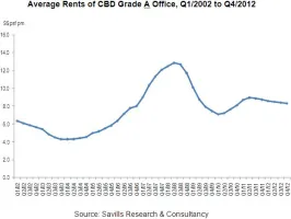 Chart of the Day: Average rents of CBD Grade A offices stabilise