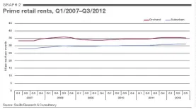 Monthly prime suburban rents held firm at S$31.1 per sq ft while those on Orchard Road softened 0.8% to S$35.2 psft.