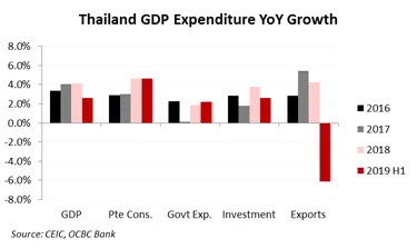Public and private investments, especially infrastructure projects in Eastern Economic Corridor, may also rise in Q4 2019. The government also unveiled a US$10.2b fiscal package to boost growth for multiple sectors, particularly tourism.