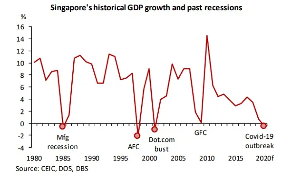 The COVID-19 pandemic is tipped to hurt Singapore’s economy harder than SARS and the Global Financial Crisis (GFC), with the GDP projected to contract 0.5% in 2020, according to a DBS Group Research report.