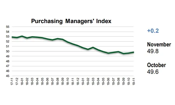 PMI rose 0.2 points to 49.8 in November
