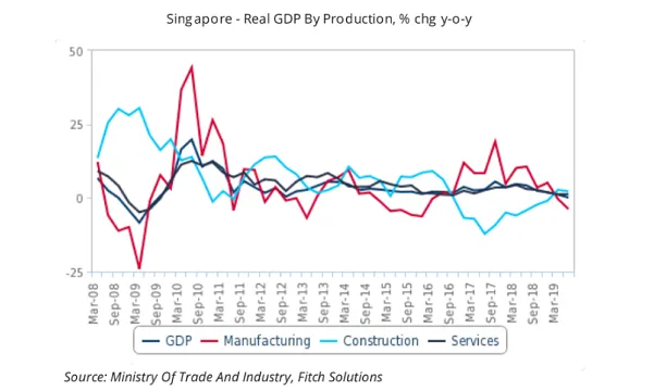 "While we have held the view since the beginning of the year that MAS would stand pat in 2019, after increasing the slope of the S$NEER twice in 2019, the slowdown in Singapore’s external and manufacturing sectors poses substantial risks to our view, and we will probably revise it over the coming weeks," Fitch Solutions said. "Such a revision would imply a weaker Singapore dollar, which would help to support the external sector."