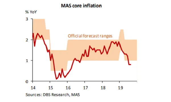 Despite muted price growth in the past few months, inflation is likely to remain in positive territory this year. “[O]ur economist expects headline inflation to recover to 1.1% in 2020 from a projected 0.5% this year,” Philp Wee, FX strategist at DBS, said in a report.