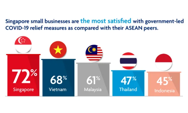 This figure shows that amongst ASEAN peers, Singapore is the most pleased, outpacing Vietnamese small businesses at 68%. Following these two markets are Malaysia (61%), Thailand (47%) and Indonesia (45%).