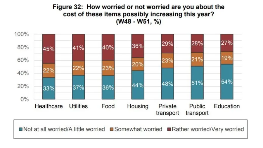 The chart identified how worried Singaporeans are about the increasing costs of utilities, food, housing, private transport, public transport, and education.