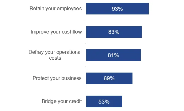 This chart from Experian shows that almost all or 93% of the SMEs surveyed stated that the three budget measures were most effective in helping them retain their staff.