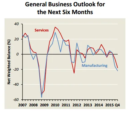 Both the services and manufacturing sectors are mired in pessimism.