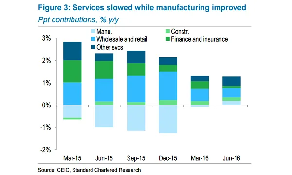 On the other hand, Standard Chartered noted that the accommodation and food-services sector did better, posting 1.7% y/y growth in H1.