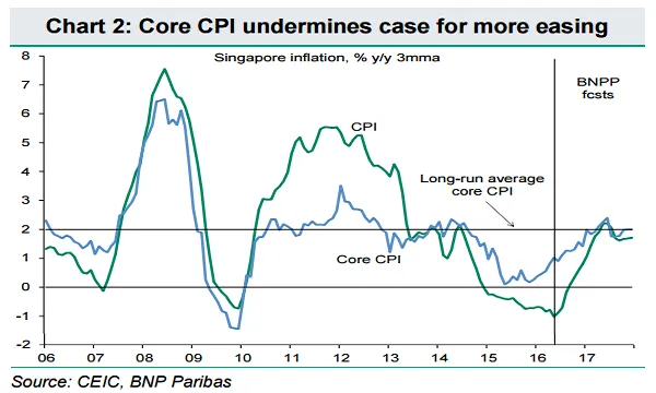 According to a report by BNP Paribas, the limited effect since the referendum on global commodity prices as well as BNP Paribas’ house view for their outlook ensures that official core CPI, which excludes accommodation and private road transport and is MAS’s preferred inflation measure, is still on course to pick up to median is 2% YoY in 2017.
