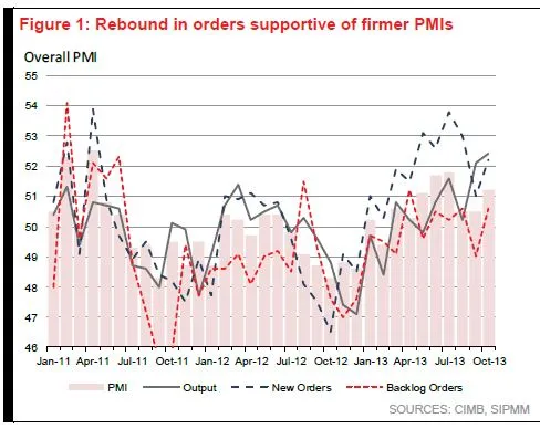 According to CIMB, the PMI’s modest improvement was led by New Orders (+1.2 pts to 52.2), New Export Orders (+0.6 pt to 51.7), Backlog Orders (+1.6 pts to 50.6) as well as Output (+0.3 pt to 52.4) and Employment (+1.1 pts to 51.2).