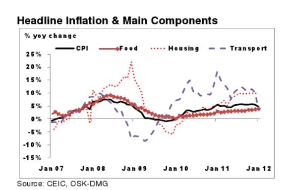 According to OSK-DMG Economics Group, headline inflation eased in Jan rising 4.8% yoy as compared to 5.5% in Dec, helped in part by favorable base effects.