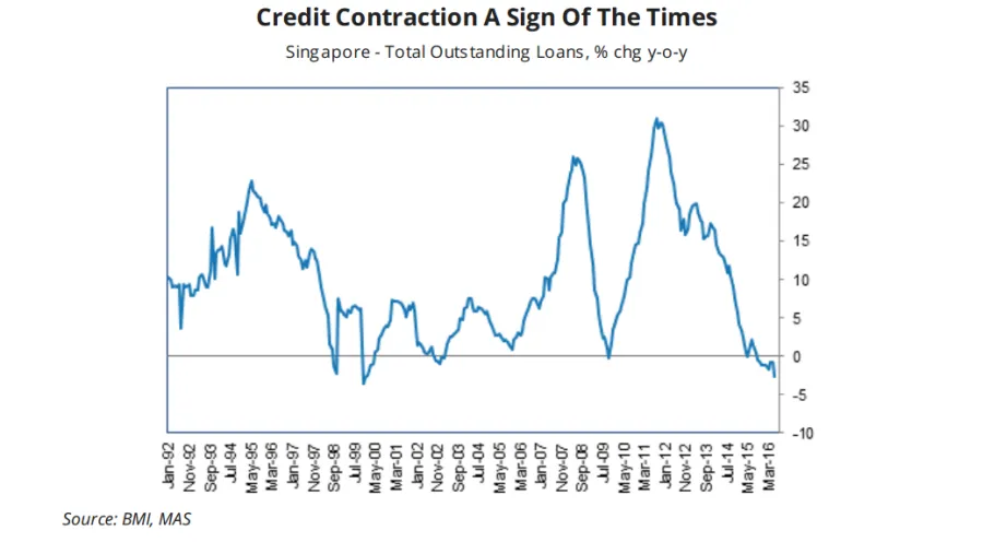 The city-state’s credit is a sign that darker days are coming for the city-state, with credit contraction at its lowest since the 90s.