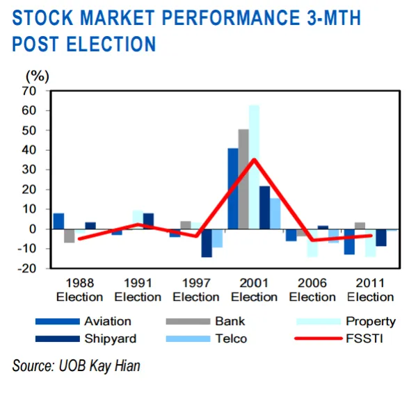 According to UOB Kay Hian, previous GEs had no discernible impact on the local bourse, as external factors and corporate earnings growth are the key drivers of stock prices.