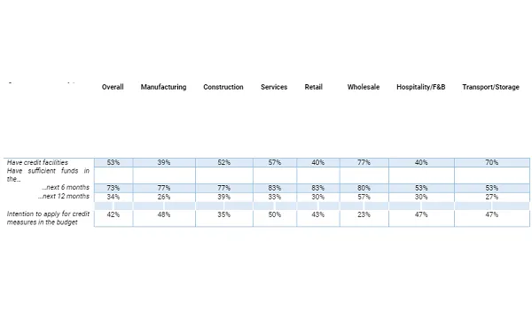 Half of the services sector (50%), followed by manufacturing (48%), hospitality/F&B (47%) and transport/storage (47%), expressed plans to apply for the credit measures introduced as part of the three supporting budgets.