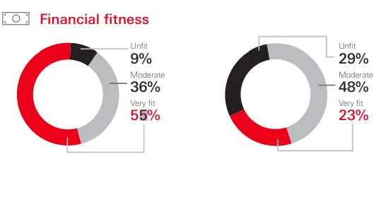 A study revealed that 55% of financially fit are also physically and mentally healthy.