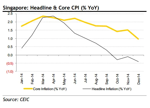 According to a report by Maybank Kim Eng, headline inflation rate in Jan 2015 fell further by -0.4% YoY (Dec 2014: -0.1% YoY).