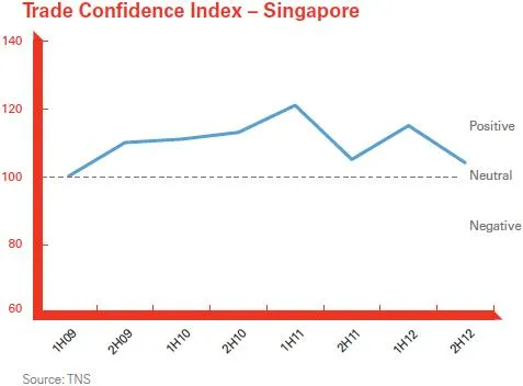 According to the HSBC Trade Confidence Index, Singaporean traders are less optimistic today than they were six months ago with scores dropping from their second highest level of 115 to 104.