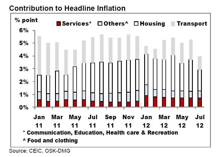 "It also helped that food prices and services inflation remained stable in Jul, rising by 2.3% and 2.8% yoy respectively in Jul, unchanged from Jun. However, we are beginning to see some pass-through from the tight labor market situation with health services cost up by 5.1% yoy in Jul vs. Jun’s 4.6%," said OSK-DMG in a research note.