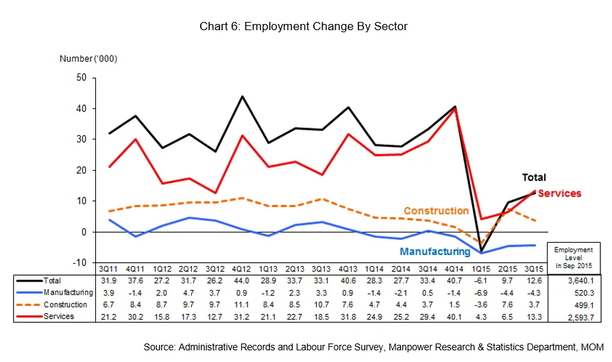Singapore's overall employment growth dropped to its slowest pace since the global financial crisis in the third quarter.