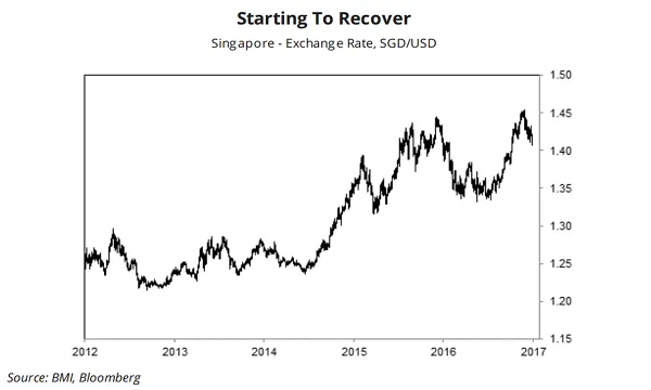 The firm noted that the SGD has sold off by approximately 5.4% since its mid-2016 peak and is starting to show signs of recovery.